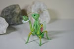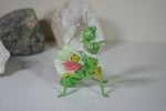 Measures about 3.5 inches tall at the point of her left antennae, about 2.5 inches wide from back to front.